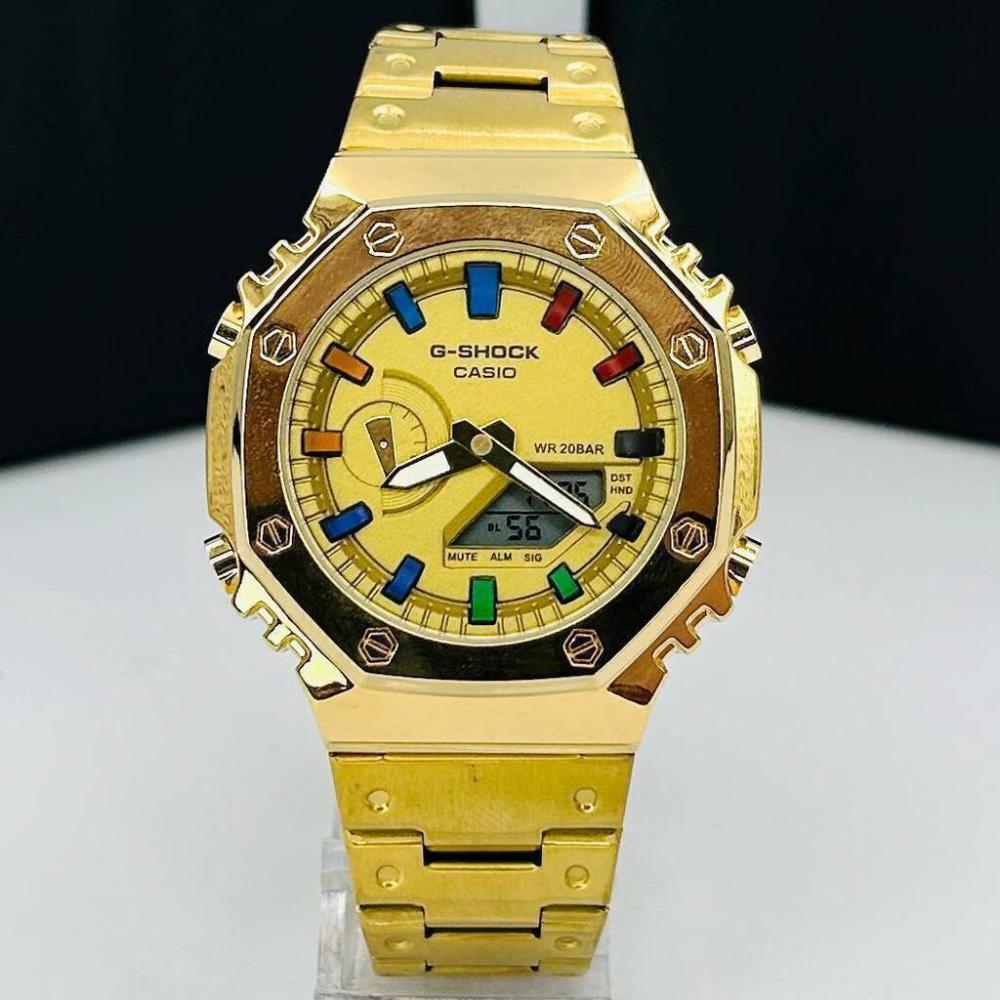 O Relógio Gshock WR 20 Bar Steel Dourado e Amarelo no Atacado é a escolha ideal para quem busca um relógio imponente, resistente e com visual marcante. Com design robusto e acabamento em aço dourado, o modelo une estilo, força e presença no pulso — perfeito para revendedores que desejam um produto com alta aceitação e excelente margem de lucro.