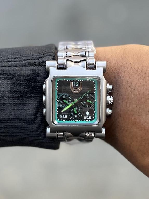 • 1x Relógio Oakley Machine 100% Funcional – Pulseira de Aço Prata