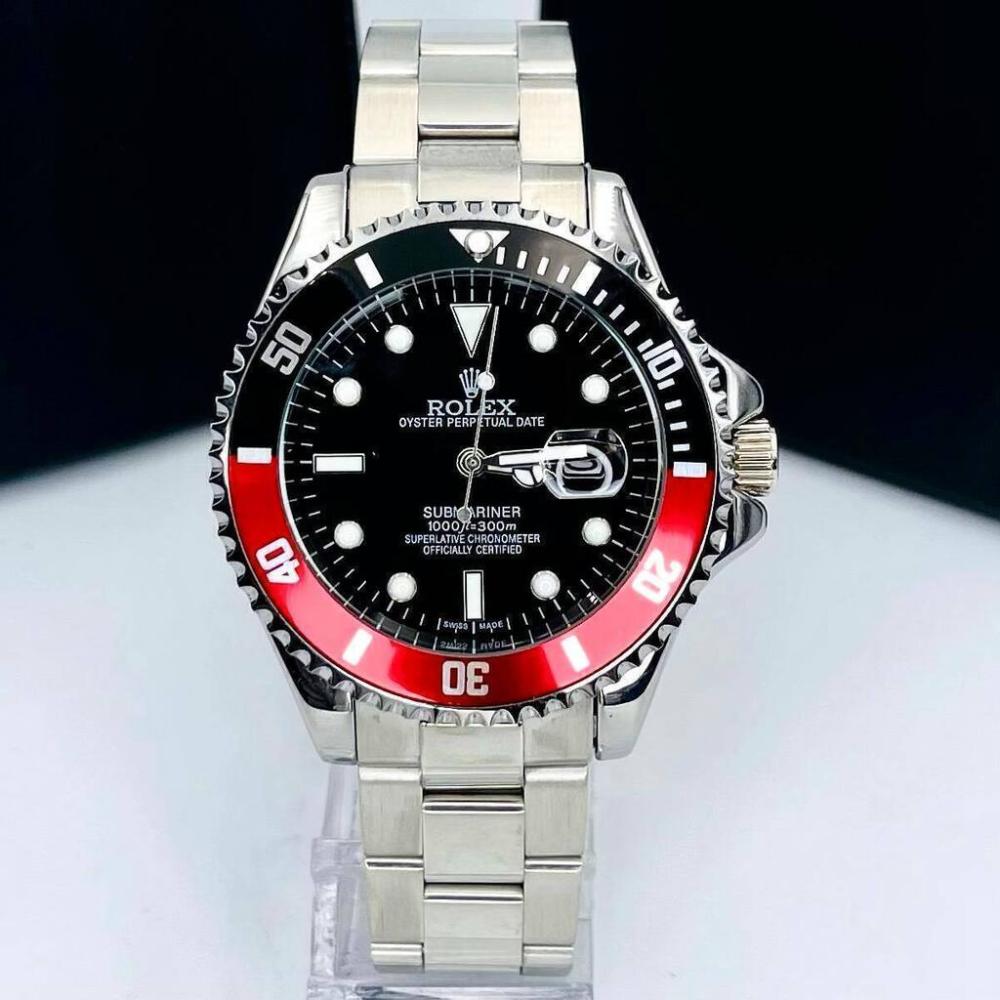 - 1x Relógio Rolex Submariner 1ª Linha – Prata, Preto e Vermelho